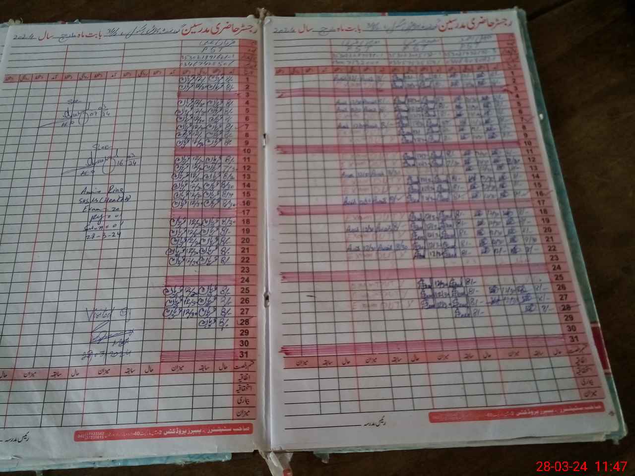 | CNIC | Full Name | Designation | R/C | Absence During Last Calender Month |