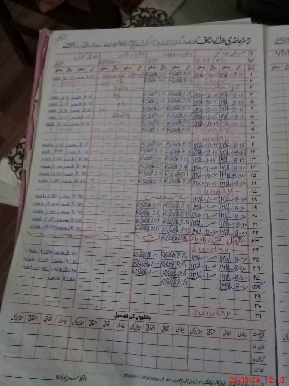 | CNIC | Full Name | Designation | R/C | Absence During Last Calender Month |
