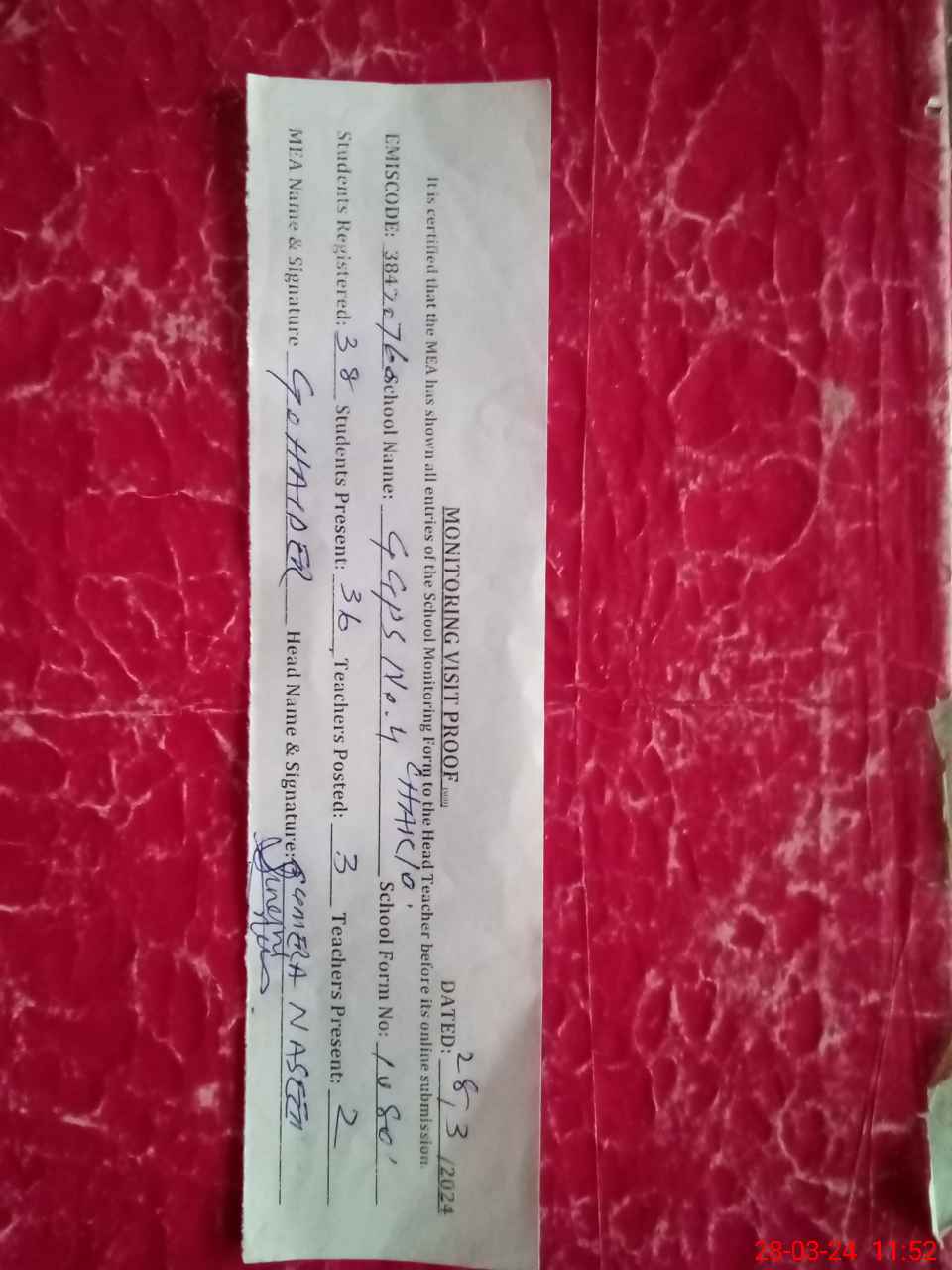 | EMIS Code: 38420760 | Name of School: GGPS NO.4 CHAK NO.10 REMOUNT DEPOT SARGODHA | |||