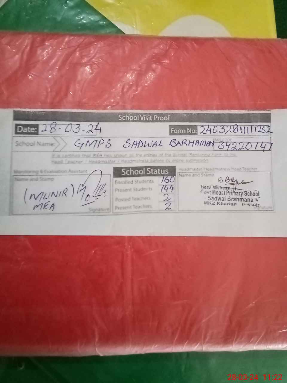 | Attendance Register | Head Teacher | MEA with School | Visit Proof |