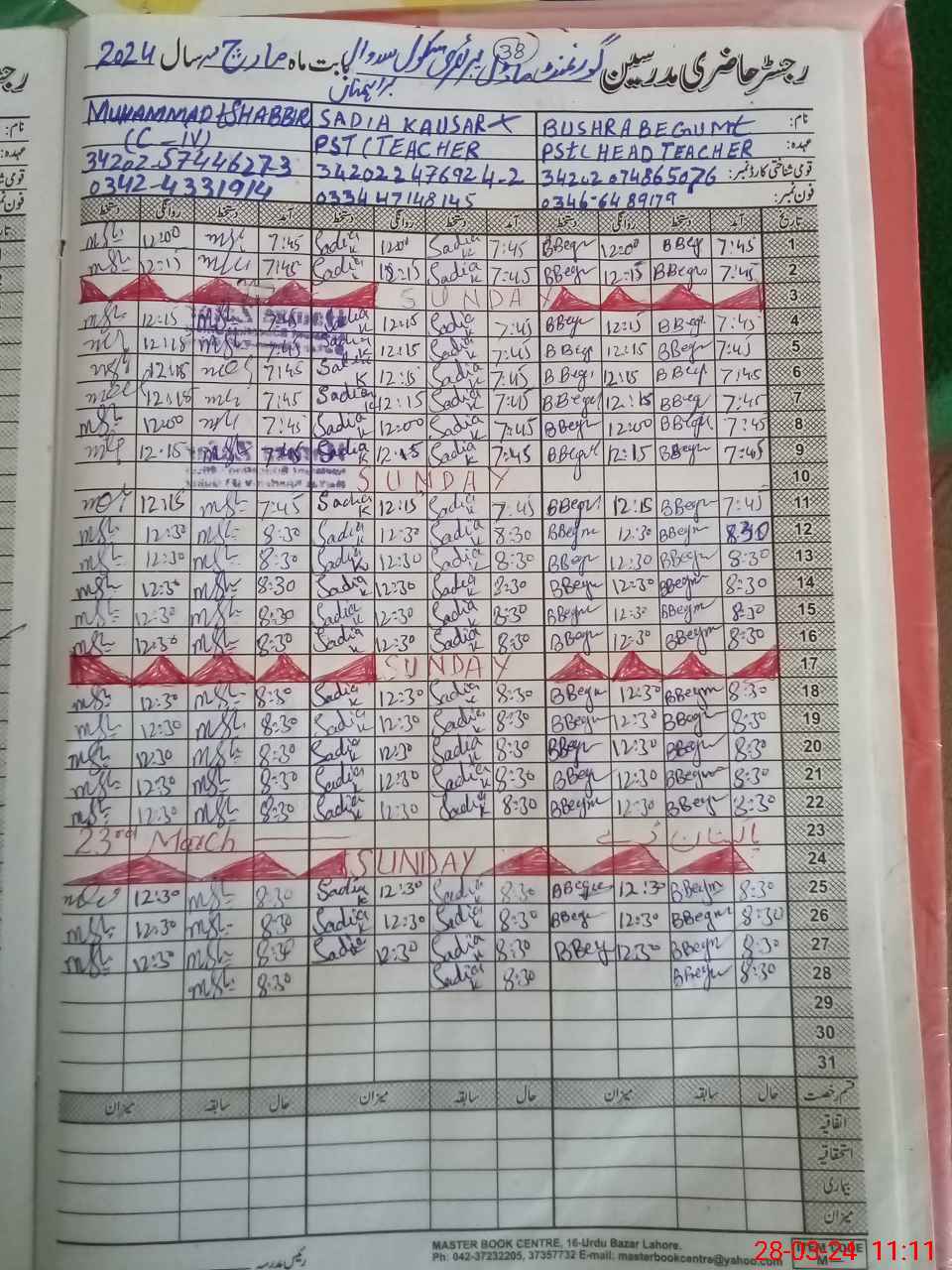 | Name: BU**** BE**** Designation: (School Headmaster's/Headmistress's) PST Phone/Cell Number: 03**** |