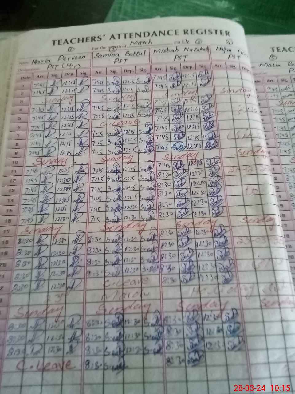 | 31**** | Ha**** Hi**** | PST | Regular | 0 | 0 | 0 | 0 | 0 | 0 | 0 | 0 | 0 | Absent (Un-Authorized) |