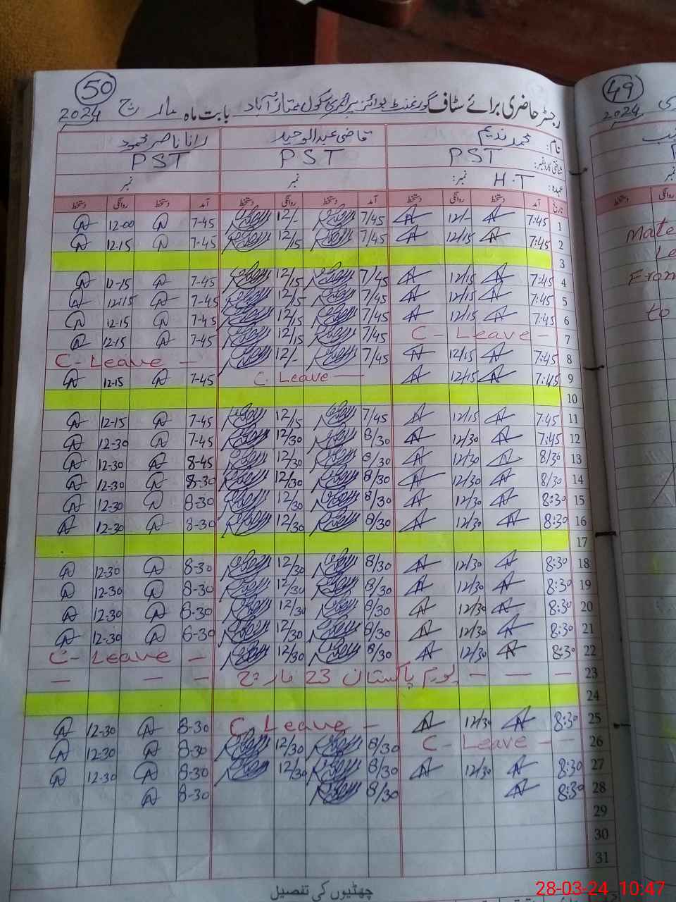 | Name: Mu**** Na**** Designation: (School Headmaster's/Headmistress's) PST Phone/Cell Number: 03**** |