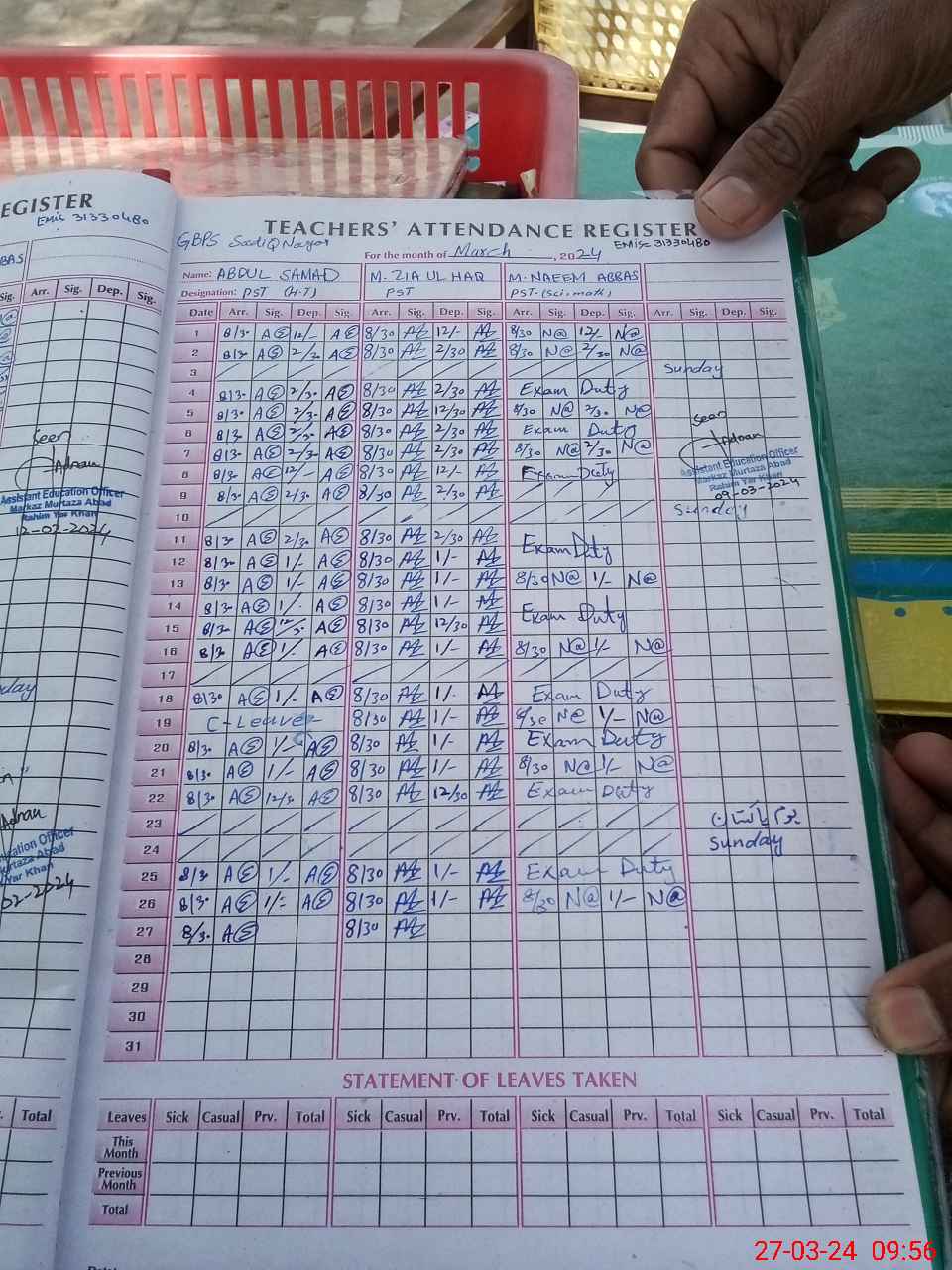 | 31**** | Mu**** Na**** Ab**** | PST | Regular | 0 | 0 | 0 | 0 | 0 | 0 | 0 | 0 | 0 | Exam Duty |