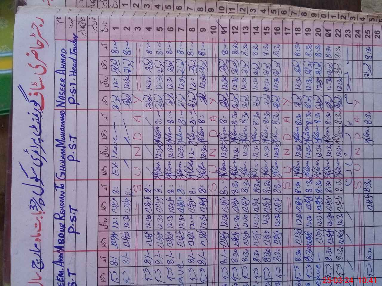 | Name: NA**** AH**** Designation: (School Headmaster's/Headmistress's) PST Phone/Cell Number: 03**** |