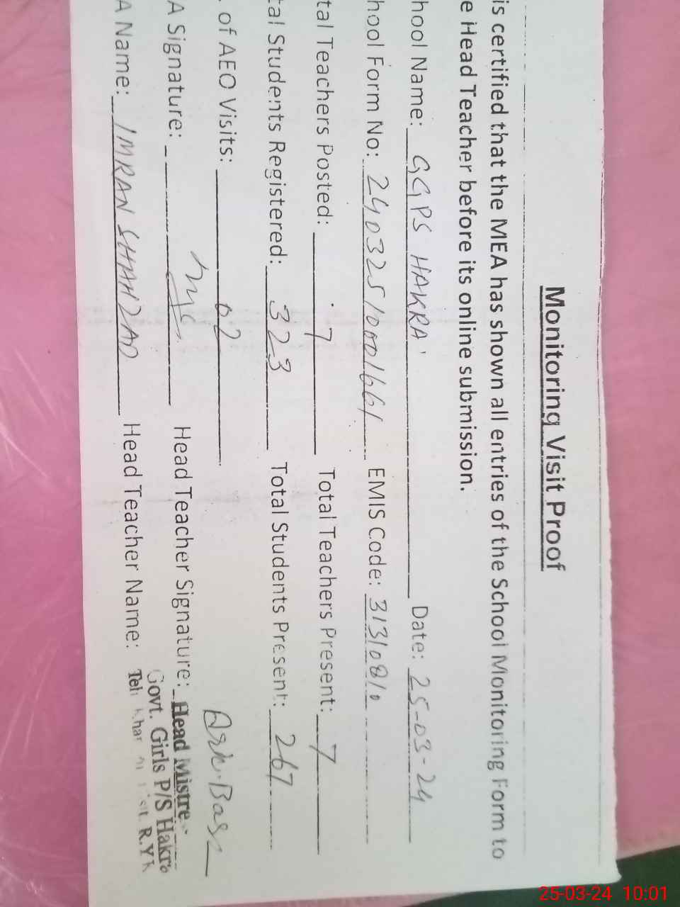 | EMIS Code: 31310810 | Name of School: GGPS HAKRA | |||