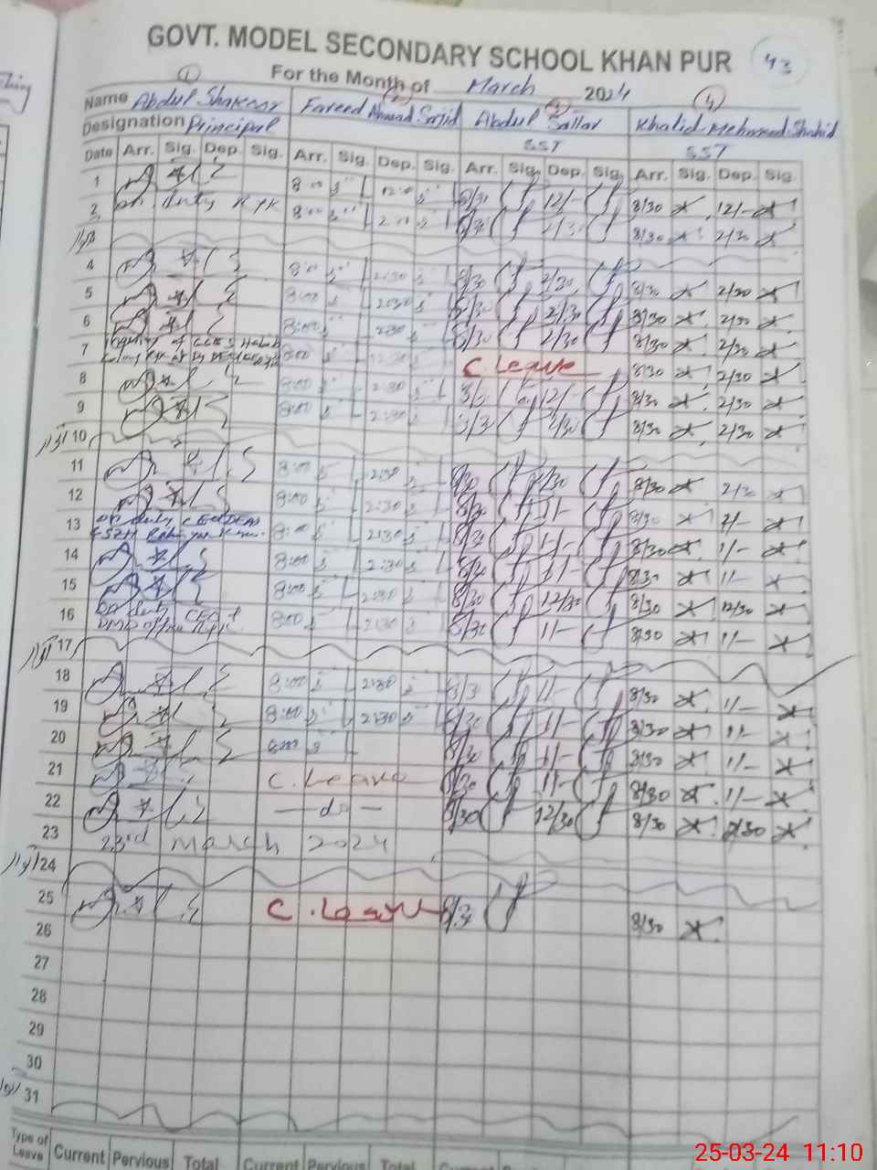 | 31**** | Mu**** Am**** Ri**** | 3 | 1 | 0 | 0 | 0 | 0 | 0 | 0 | 0 | 0 | 0 | Exam Duty |