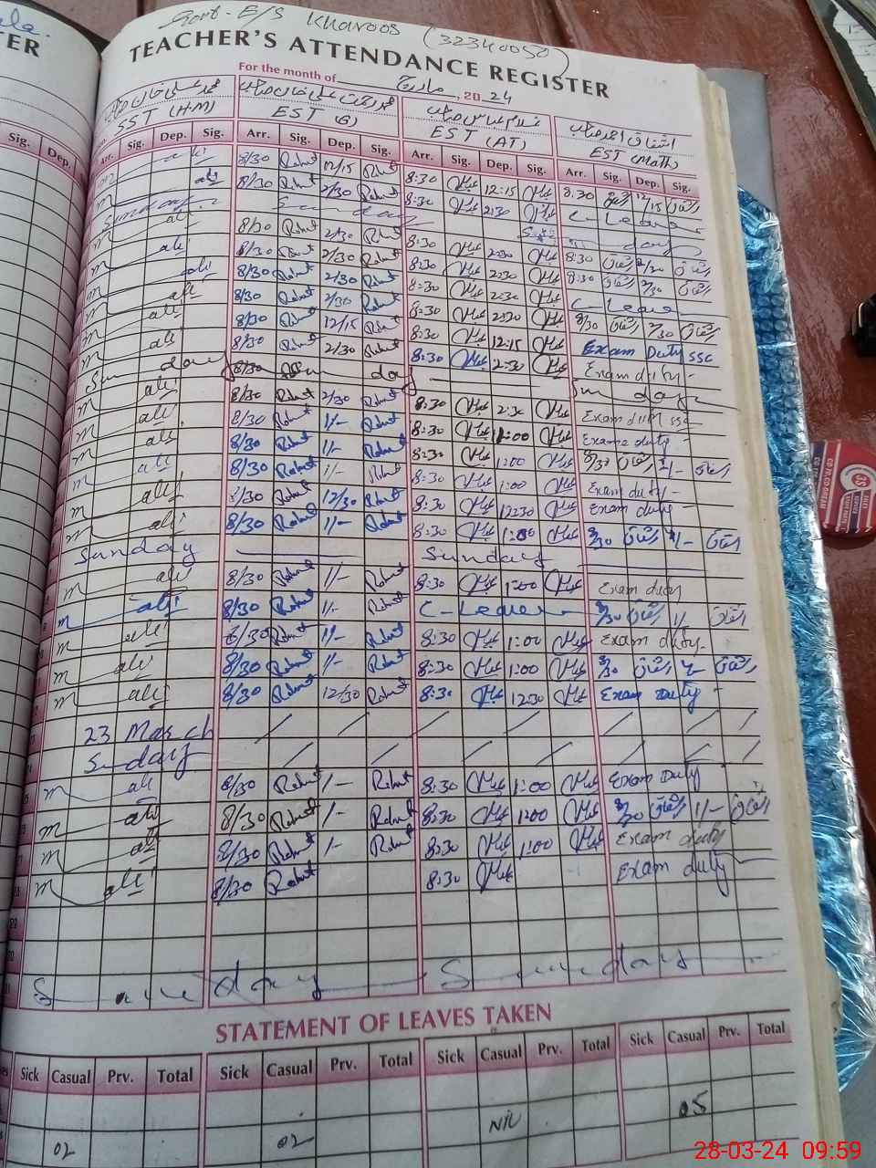 | 32**** | Is**** Ah**** | 3 | 1 | 0 | 0 | 0 | 0 | 0 | 0 | 0 | 0 | 0 | Exam Duty |