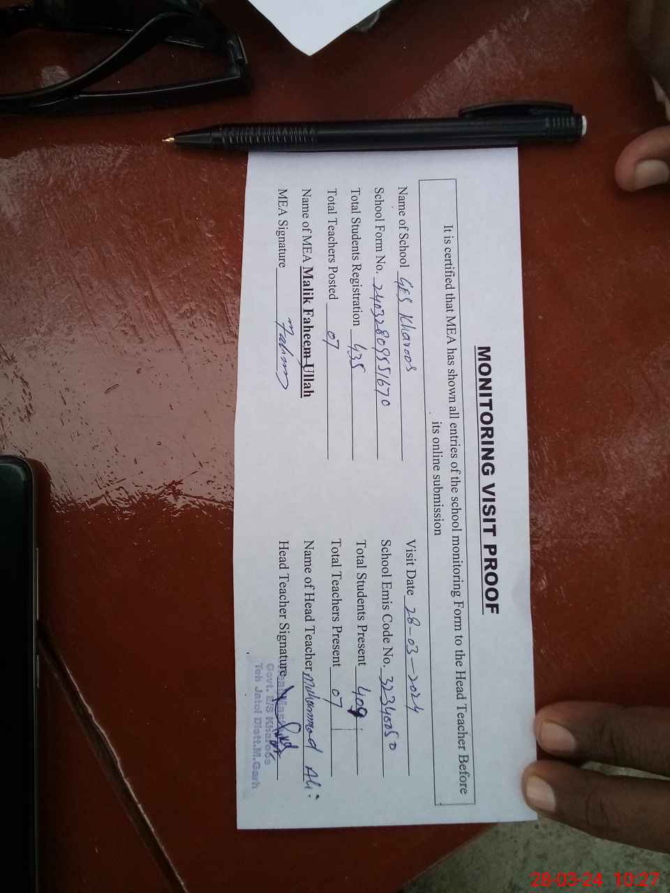| Certified that this School was Inspected by the Undersigned MEA/DMO Today and the Information Stated Above is as Per Record. | |||||