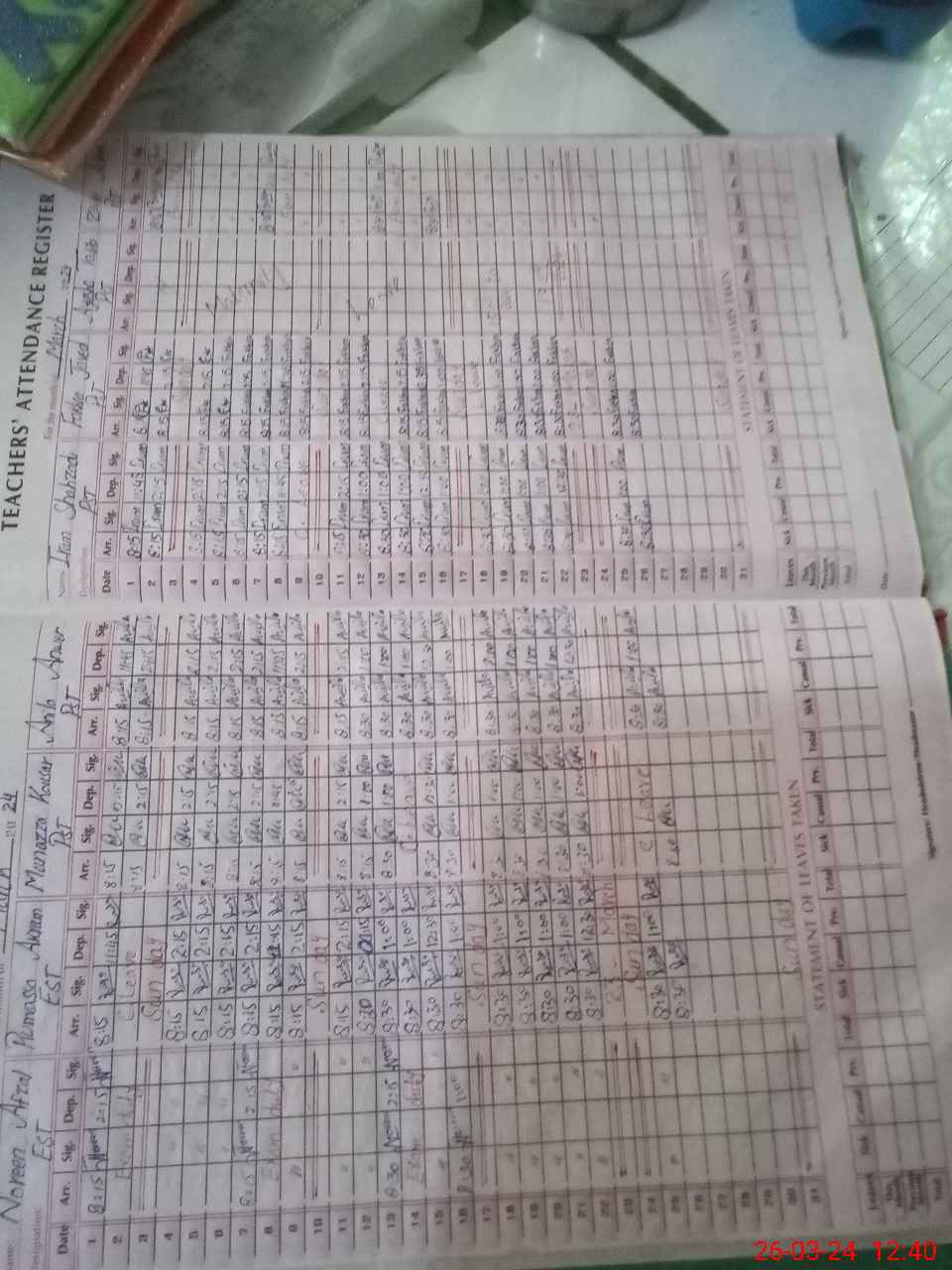 | Leave | Duty | Absent | Maternity | Medical | Ex- Pak |