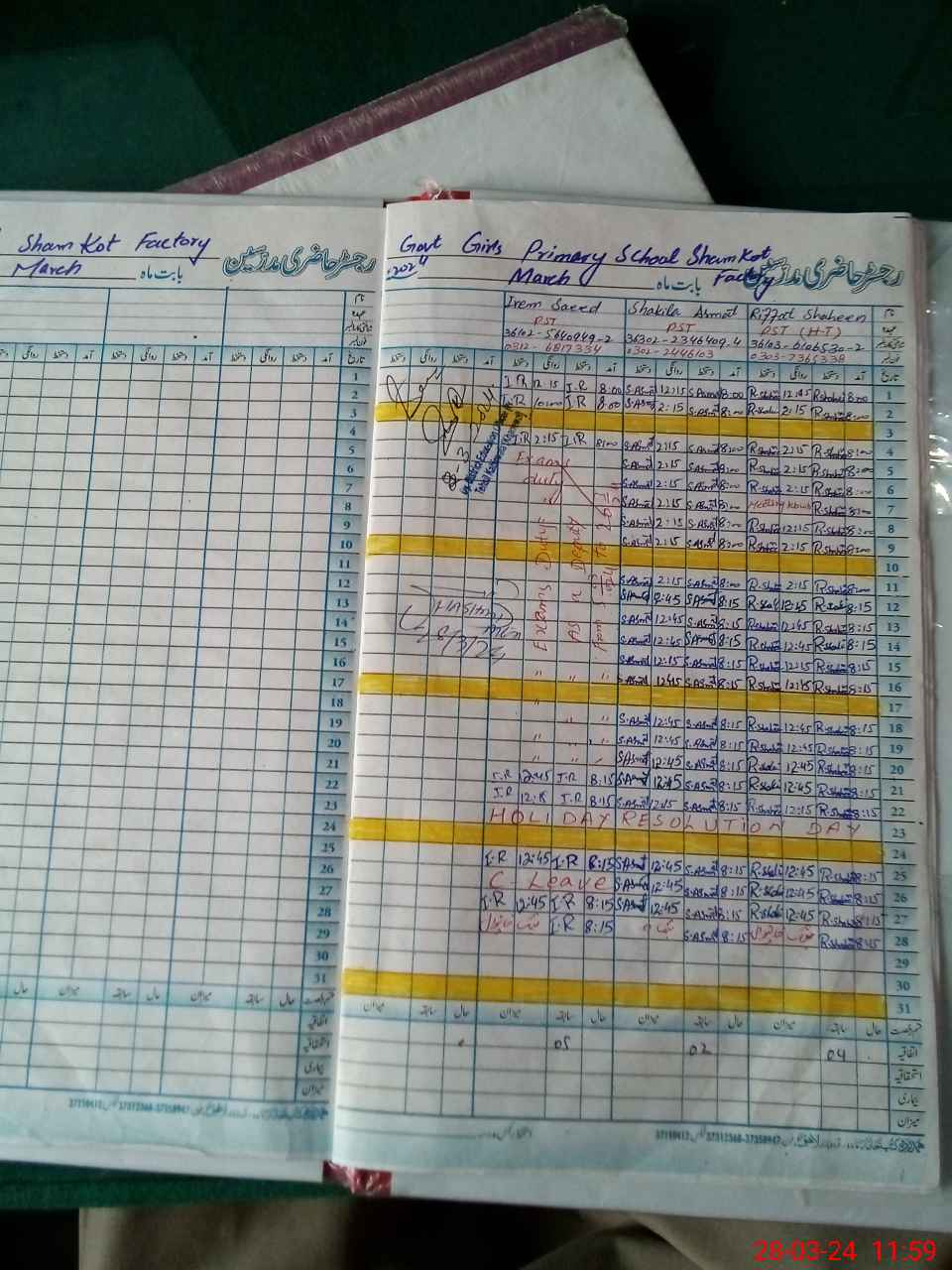| CNIC | Full Name | Designation | R/C | Absence During Last Calender Month |