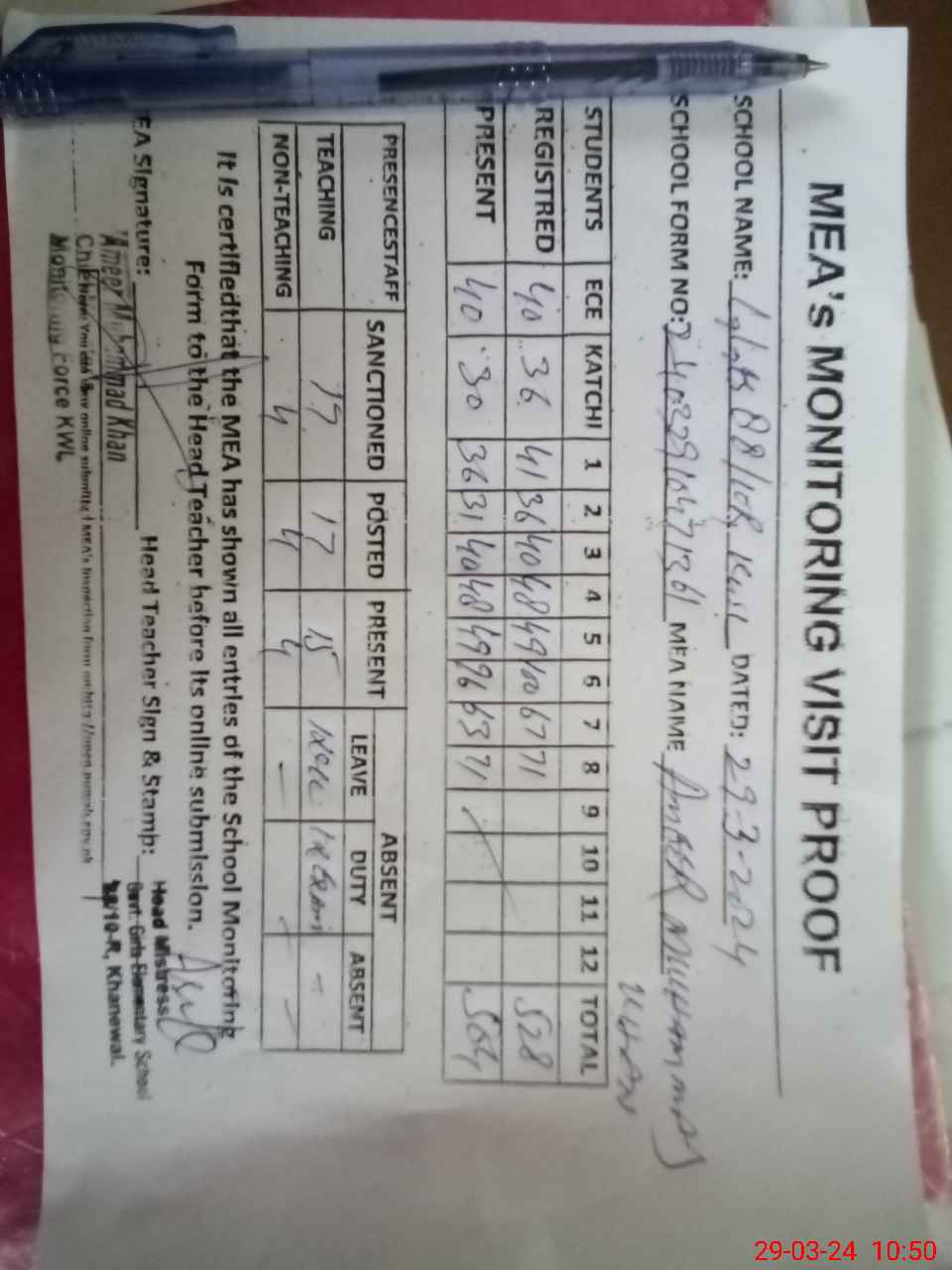 | Monitoring Date: 29-03-2024 | Start Time: 29-03-2024 10:28 AM | End Time: 29-03-2024 10:54 AM | Name of MEA: Am**** Mu**** Kh**** | |