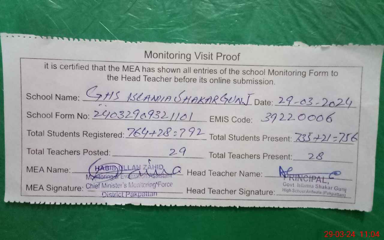 | EMIS Code: 39220006 | Name of School: GHS ISLAMIA SHAKARGUNJ | |||