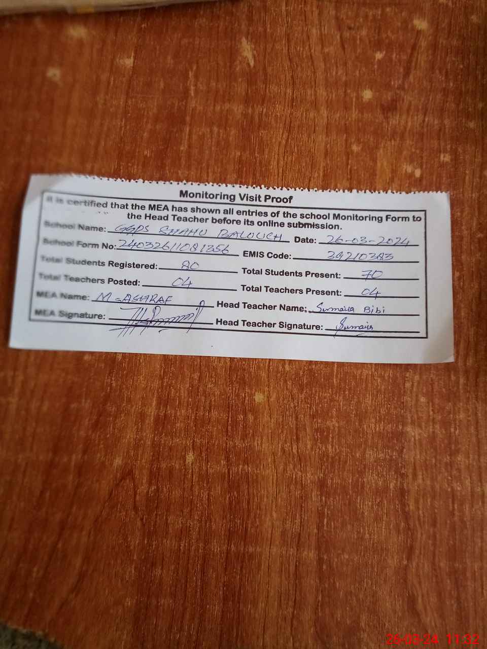 | EMIS Code: 39210383 | Name of School: GGPS SHAHU BLOCH | |||