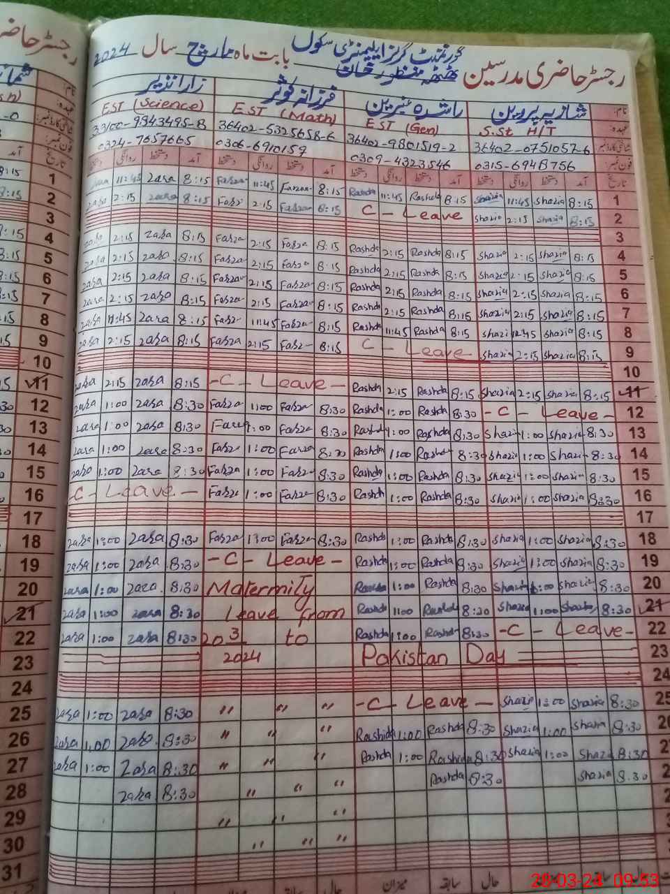 | Name: Sh**** La**** Designation: (School Headmaster's/Headmistress's) EST Phone/Cell Number: 03**** |
