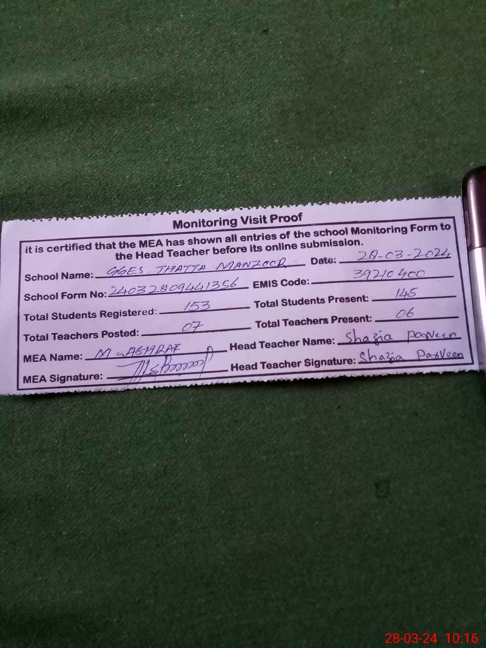| EMIS Code: 39210400 | Name of School: GGES THATTA MANZOOR KHAN | |||