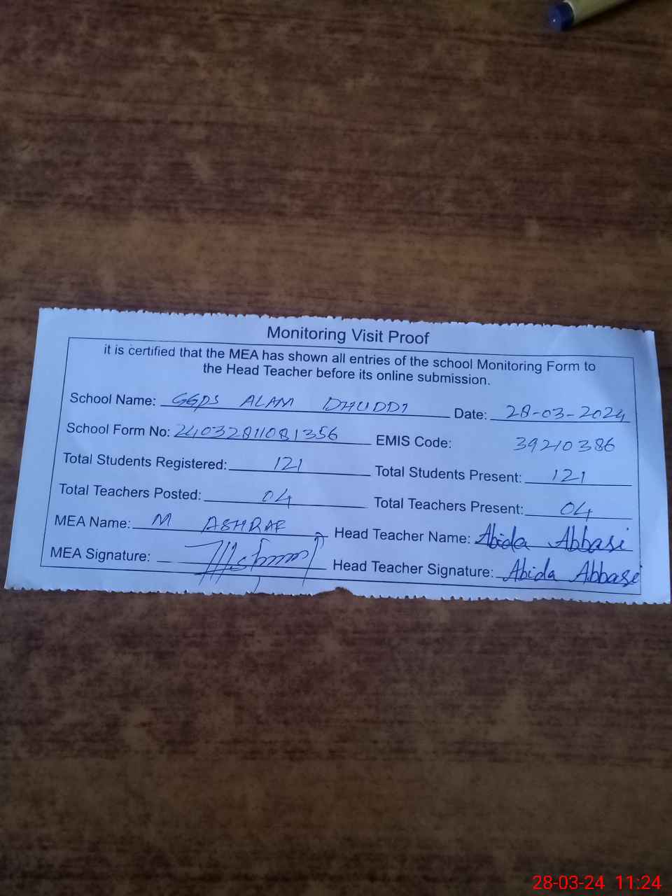 | EMIS Code: 39210386 | Name of School: GGPS ALAM DUHDI | |||