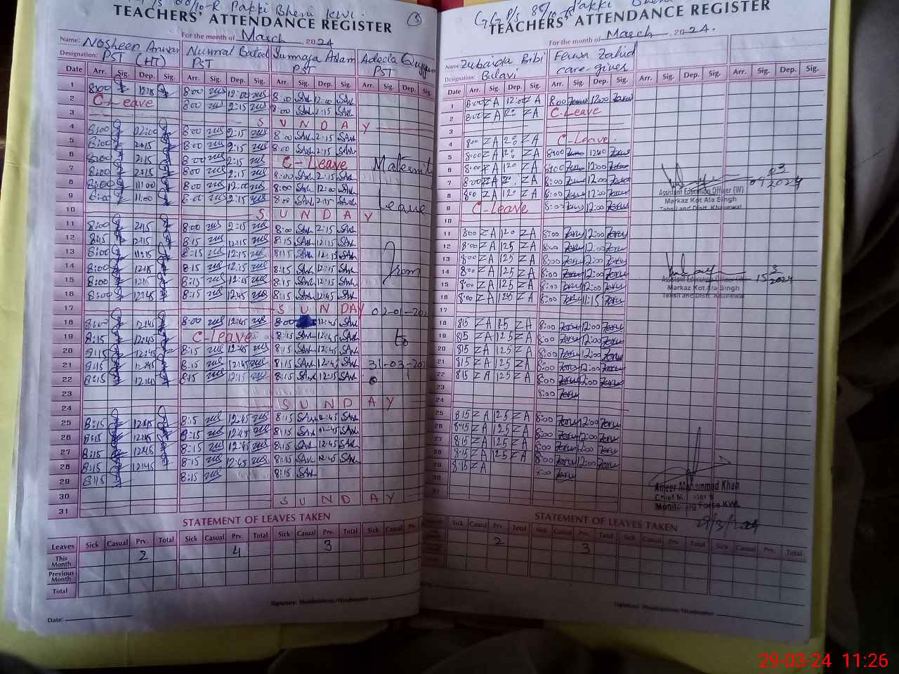 | Remarks (Use Separate Page if Required): Students attendance noted from Roznamcha | |||||