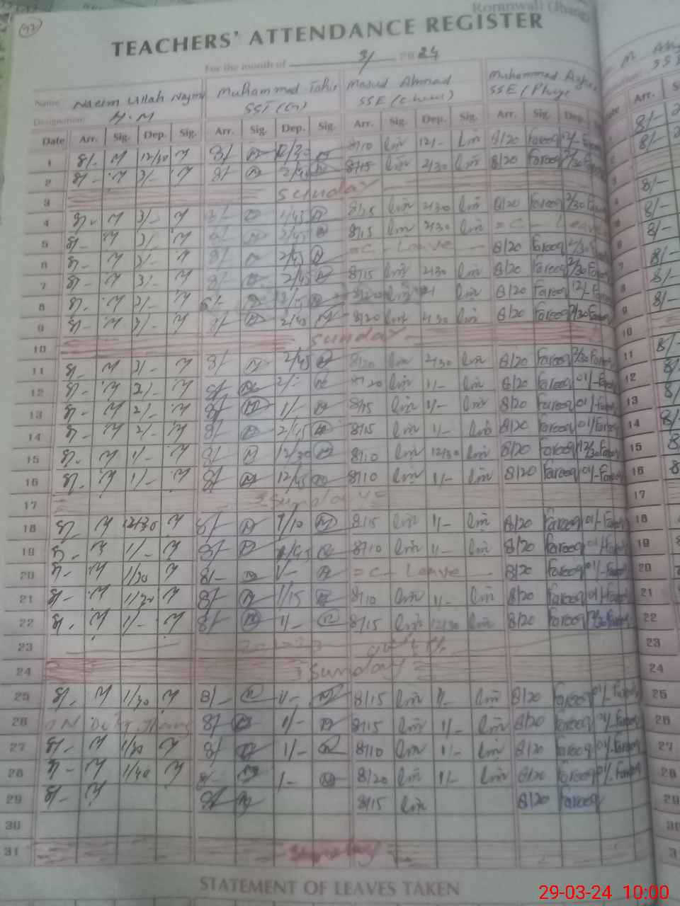 | CNIC | Full Name | Designation | R/C | Absence During Last Calender Month |