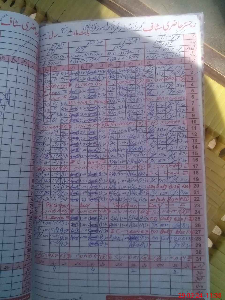 | CNIC | Full Name | Designation | R/C | Absence During Last Calender Month |