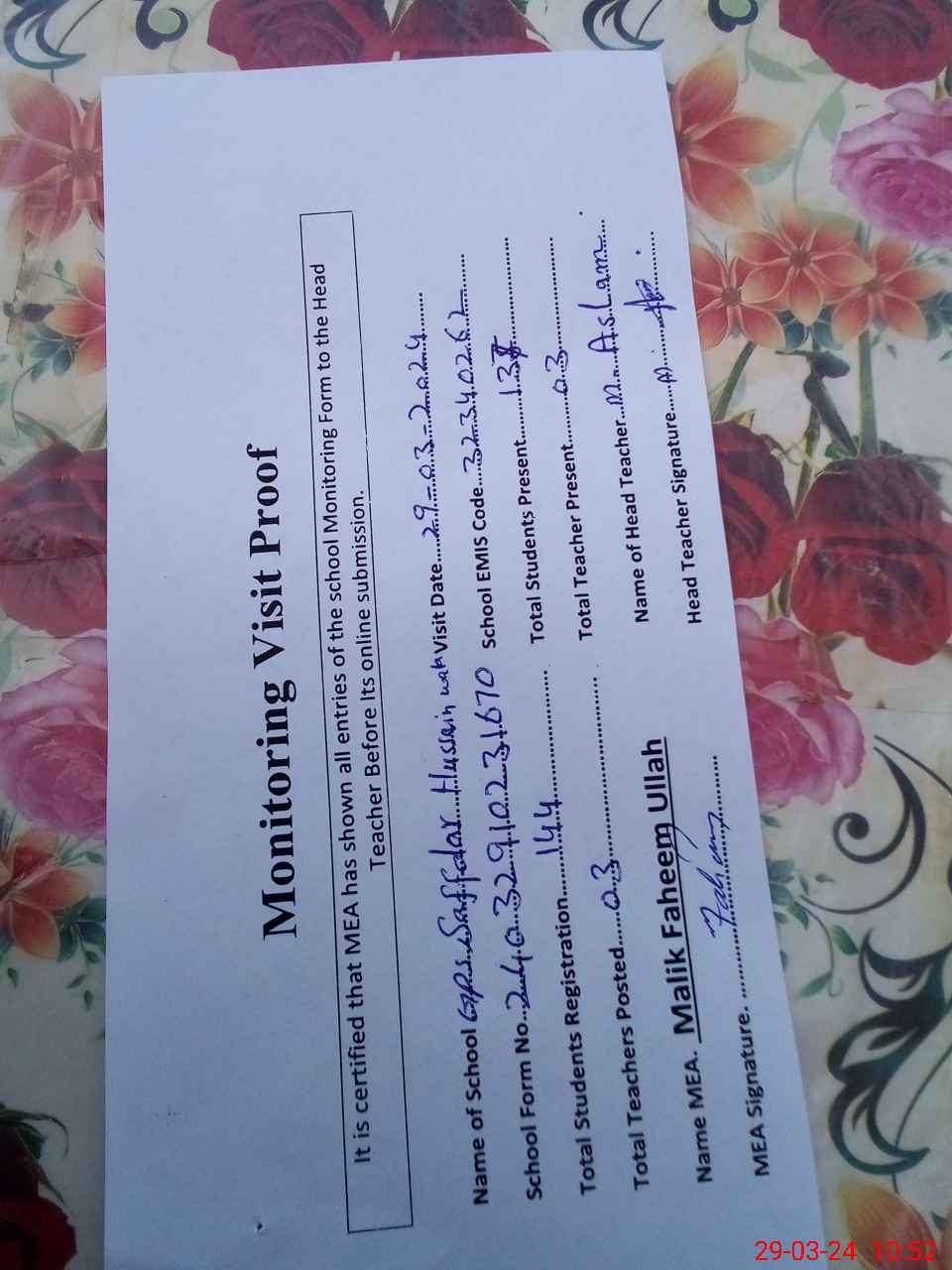 | EMIS Code: 32340262 | Name of School: GPS SAFDER HUSSAIN WALA | |||