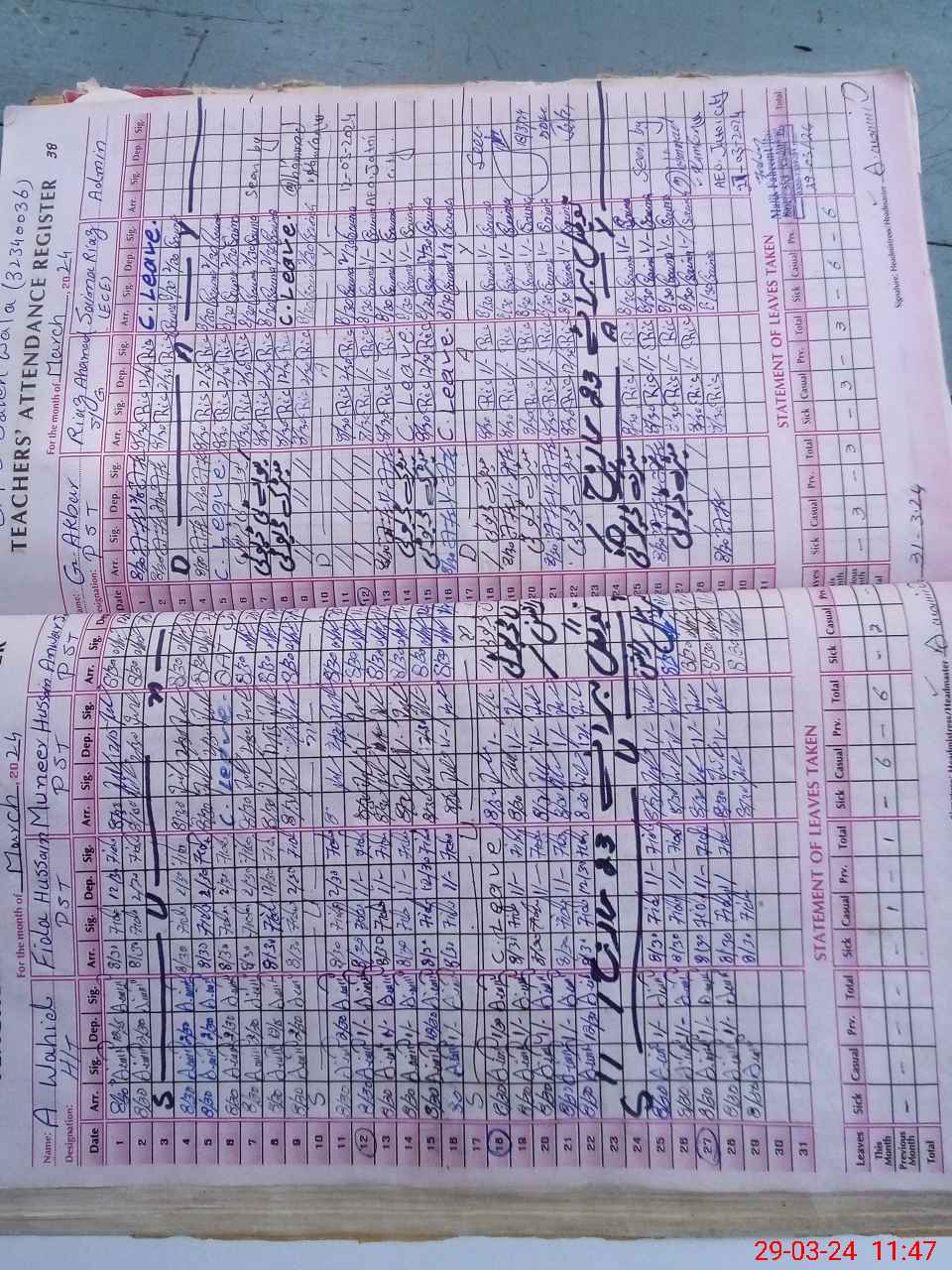 | Leave | Duty | Absent | Maternity | Medical | Ex- Pak |