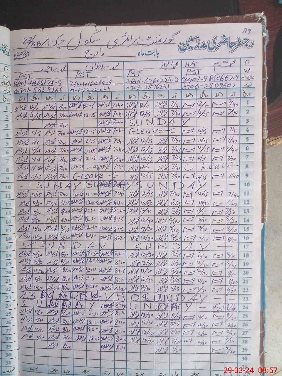 | Name: MU**** NA**** Designation: (School Headmaster's/Headmistress's) PST Phone/Cell Number: 03**** |