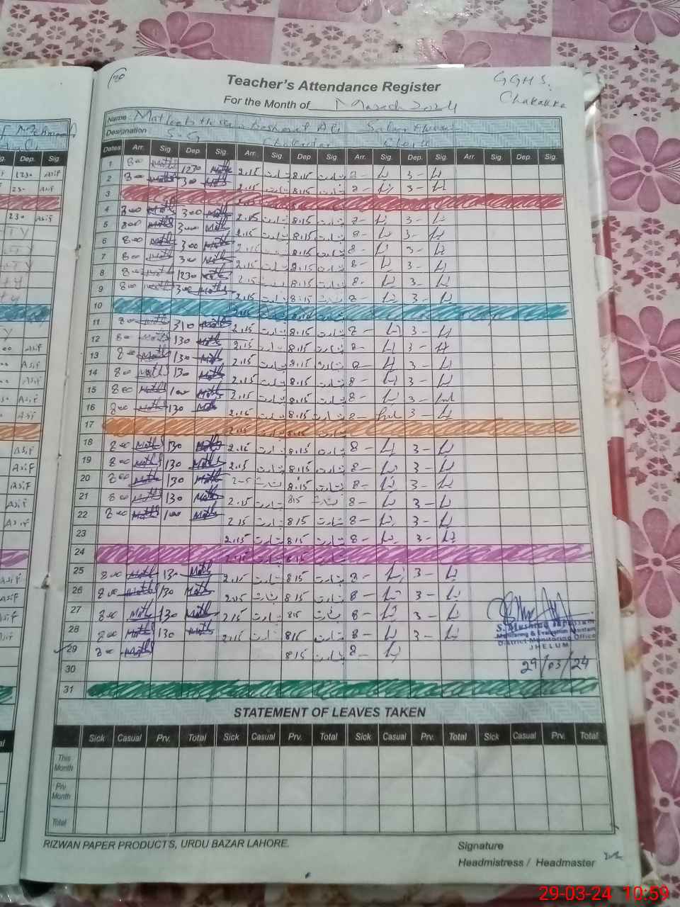 | Name: Za**** Ra**** Designation: (School Headmaster's/Headmistress's) Headmistress Phone/Cell Number: 03**** |