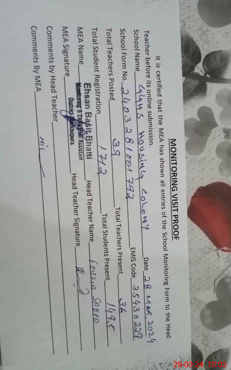 | EMIS Code: 35430229 | Name of School: GGHS HOUSING COLONY | |||