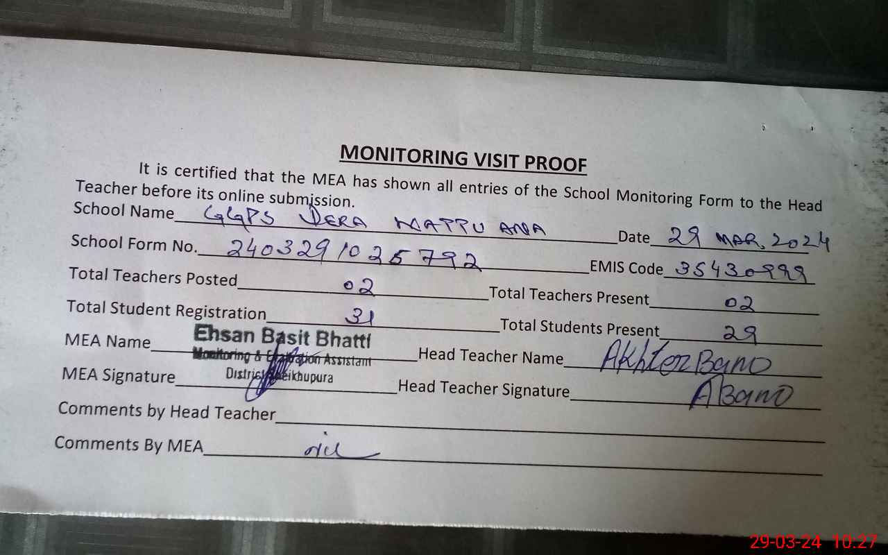 | EMIS Code: 35430999 | Name of School: GGPS DERA KATTU ANA | |||