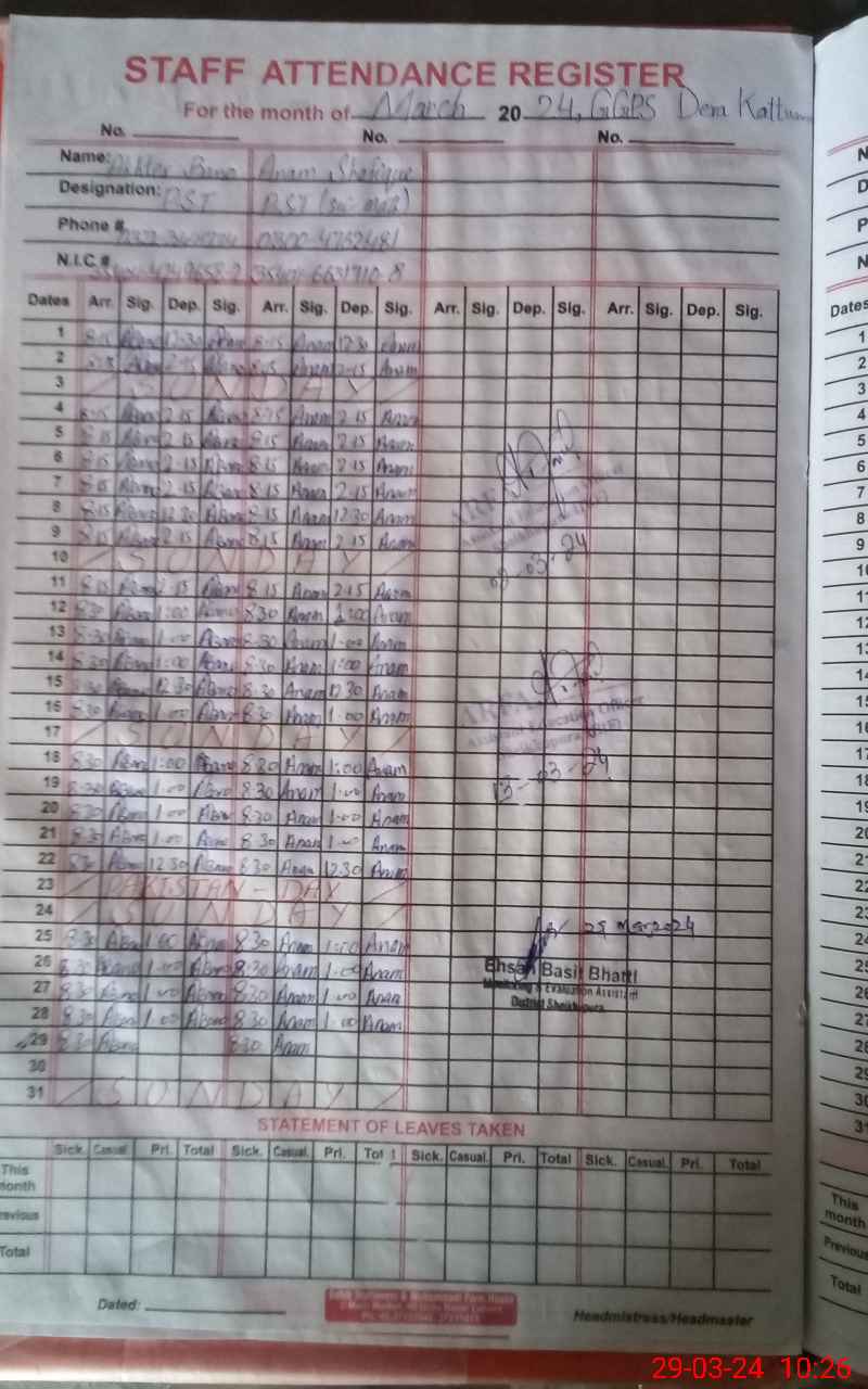 | Name: An**** Sh**** Designation: (School Headmaster's/Headmistress's) PST Phone/Cell Number: 03**** |