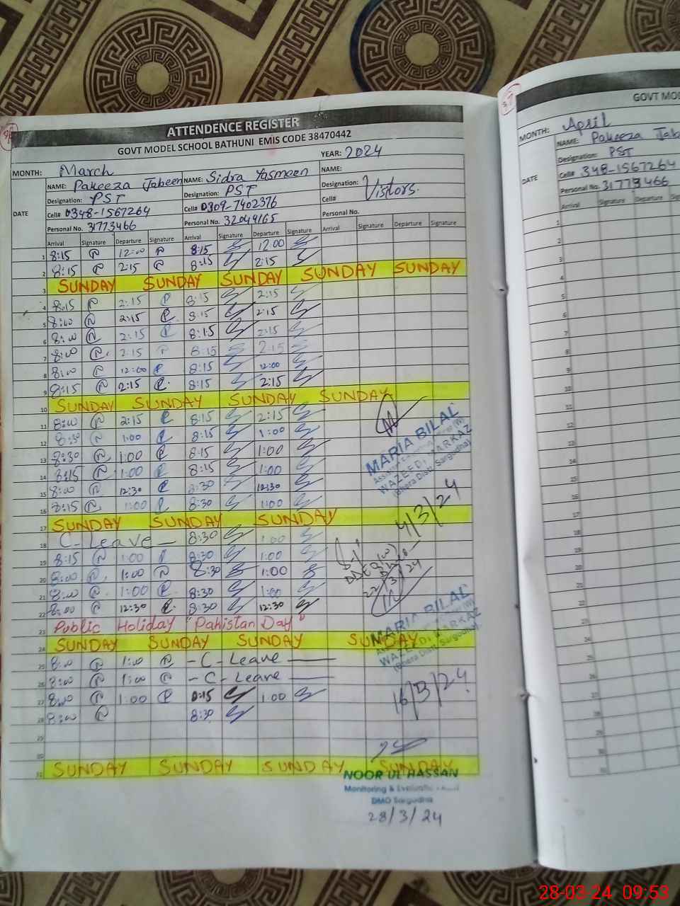| Name: PA**** JA**** Designation: (School Headmaster's/Headmistress's) PST Phone/Cell Number: 03**** |