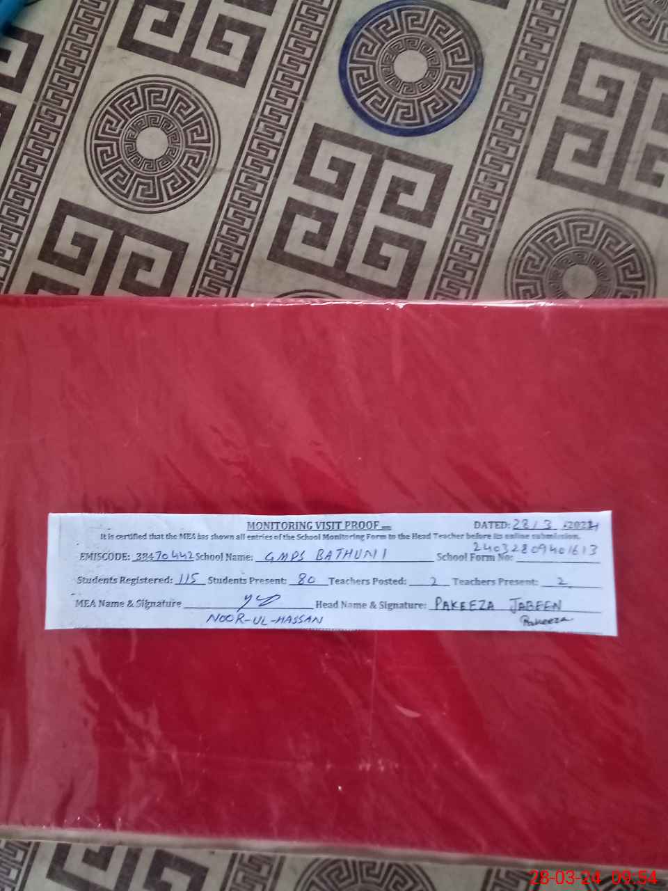 | Certified that this School was Inspected by the Undersigned MEA/DMO Today and the Information Stated Above is as Per Record. | |||||