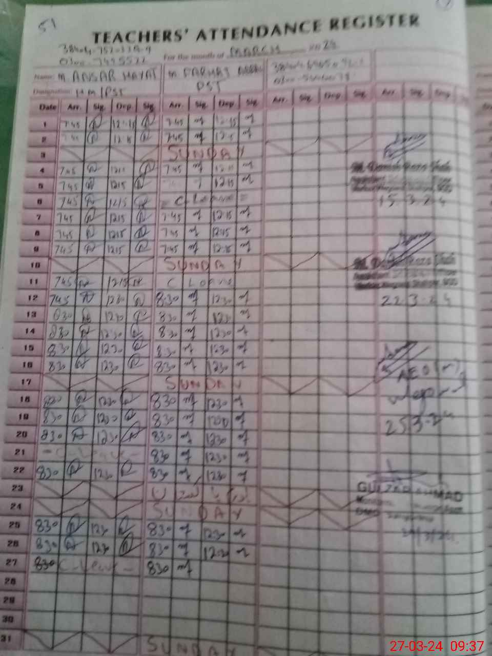 | Name: AN**** HA**** Designation: (School Headmaster's/Headmistress's) PST (Sc-Math) Phone/Cell Number: 03**** |