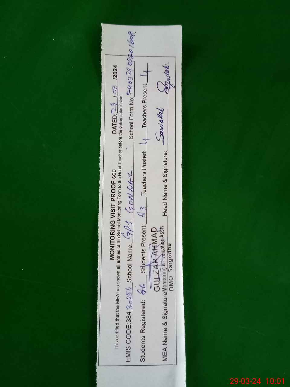 | EMIS Code: 38430254 | Name of School: GPS GONDAL | |||