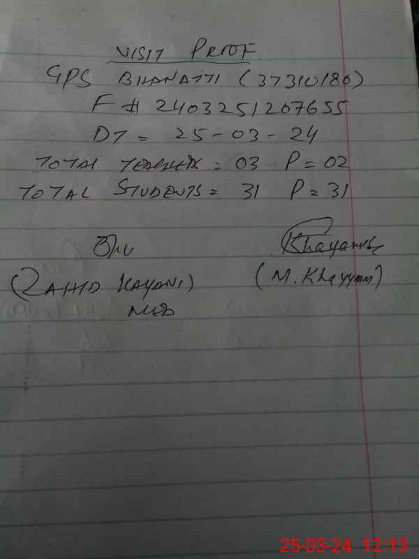 | EMIS Code: 37310180 | Name of School: GPS BHANATTI | |||