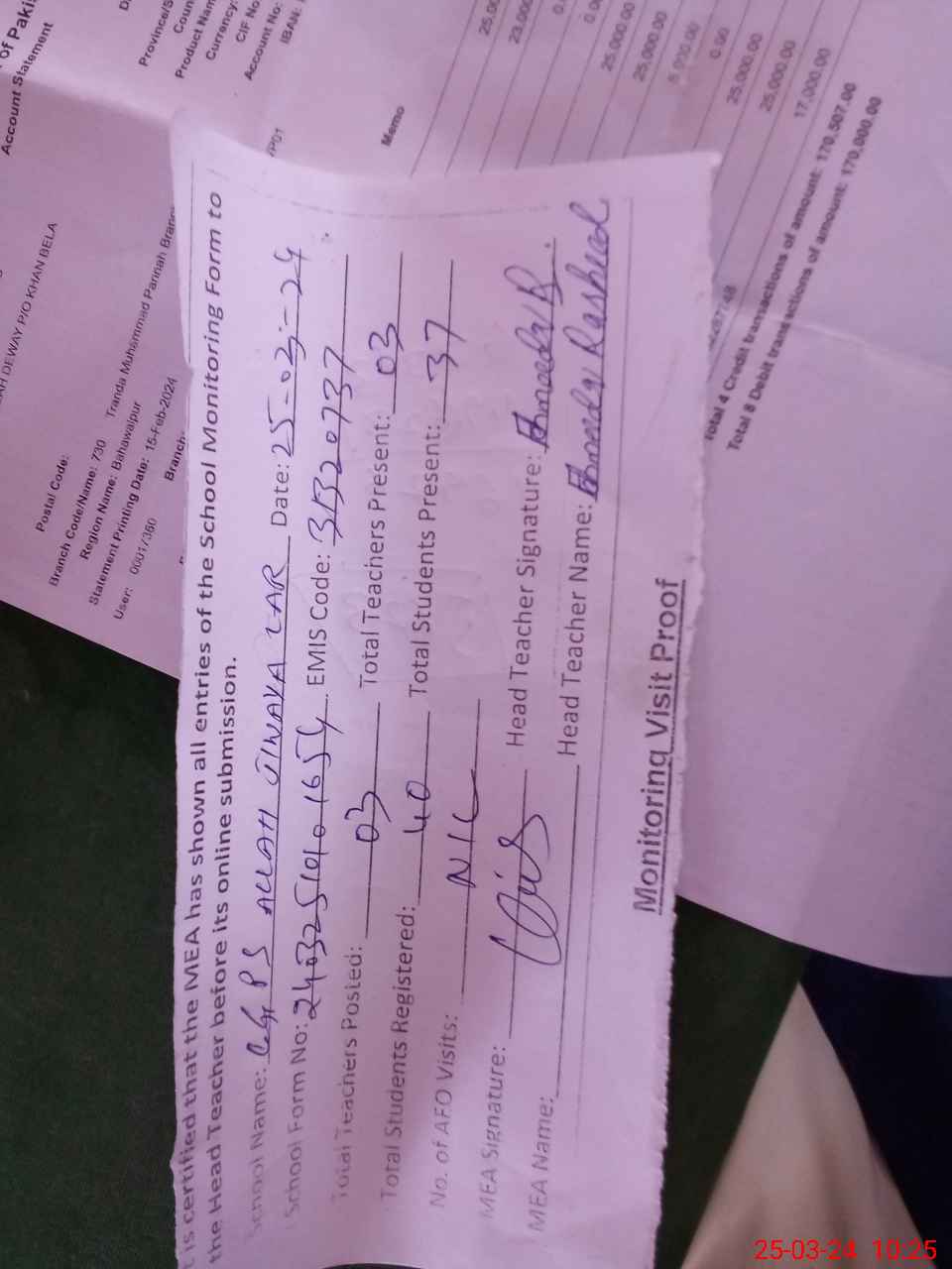 | Name: FA**** RA**** Designation: (School Headmaster's/Headmistress's) PST/PTC/JV Phone/Cell Number: 03**** |