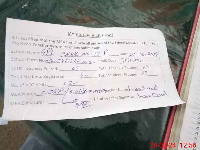 | EMIS Code: 31310170 | Name of School: GPS CHAK NO 17/P KHANPUR | |||