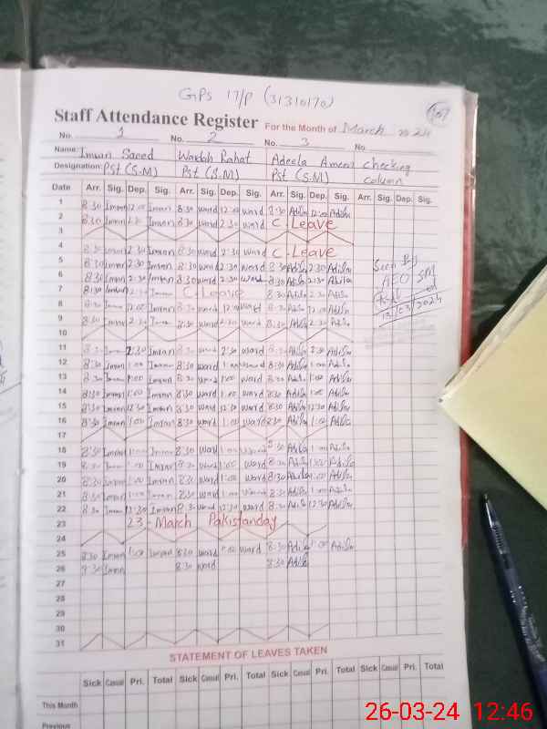 | Name: Im**** Sa**** Designation: (School Headmaster's/Headmistress's) PST Phone/Cell Number: 03**** |