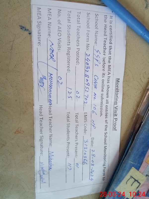 | EMIS Code: 31310366 | Name of School: GGPS CHAK NO. 106 NP | |||