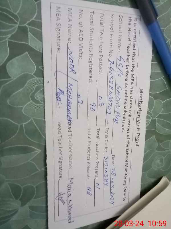 | EMIS Code: 31310389 | Name of School: GGPS SADIQ PUR | |||