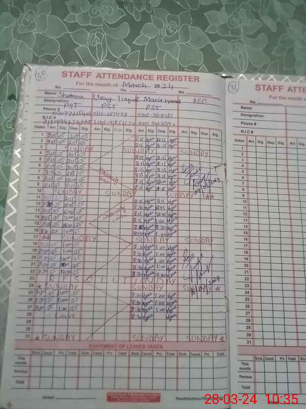 | Name: SH**** HA**** Designation: (School Headmaster's/Headmistress's) PST Phone/Cell Number: 03**** |