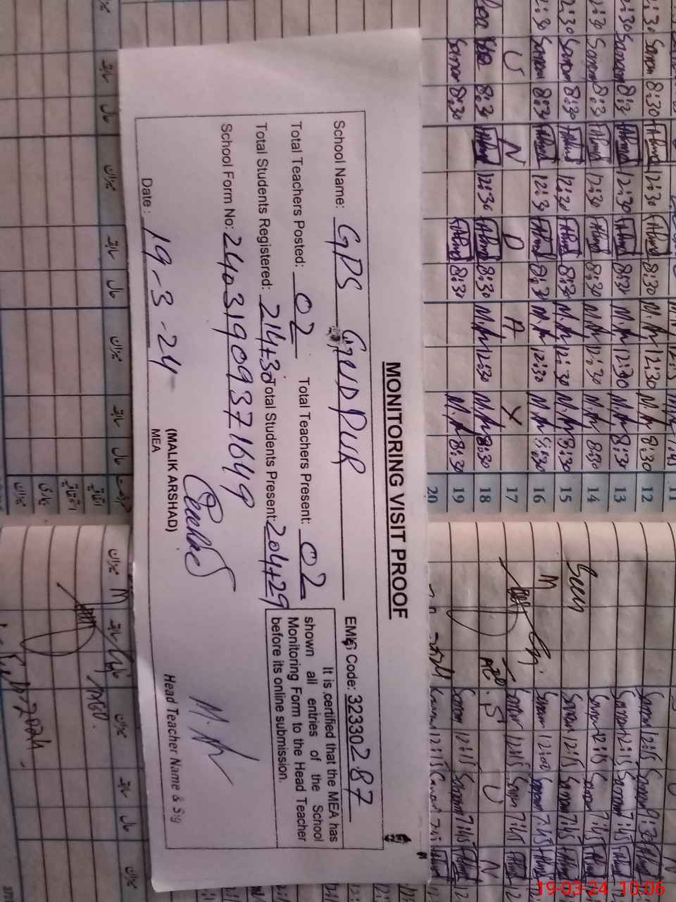 | EMIS Code: 32330287 | Name of School: GPS GUD PUR | |||