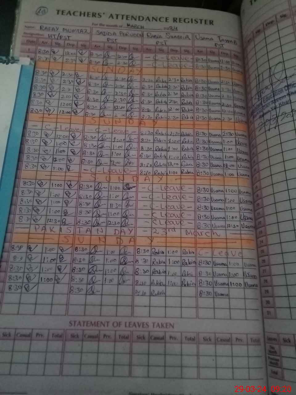 | Name: Ra**** Mu**** Designation: (School Headmaster's/Headmistress's) PST Phone/Cell Number: 03**** |