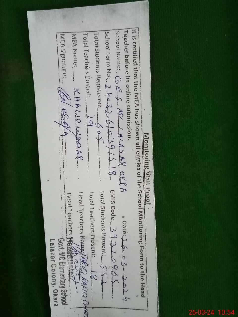| EMIS Code: 39320965 | Name of School: GES MC LALAZAR COLONY | |||