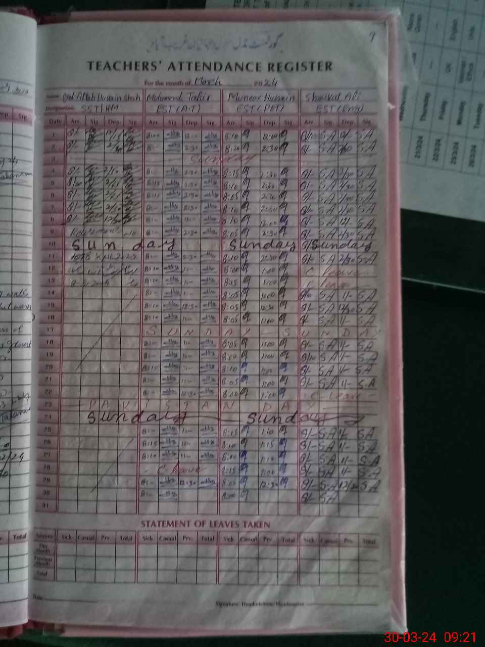 | Name: Sy**** Af**** Hu**** Sh**** Designation: (School Headmaster's/Headmistress's) S.S.T.(Arts) Phone/Cell Number: 03**** |