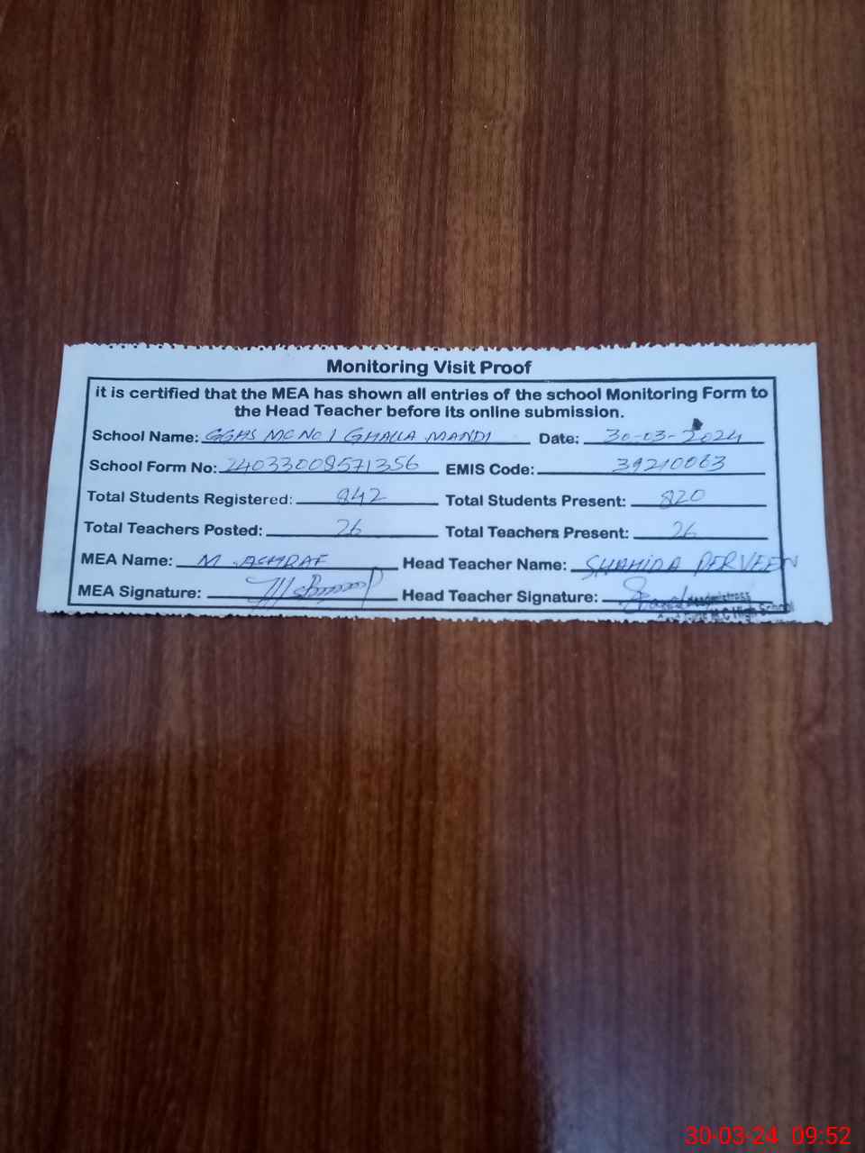 | EMIS Code: 39210063 | Name of School: GGHS MC NO. 1 GHALLA MANDI PAKPATTAN | |||