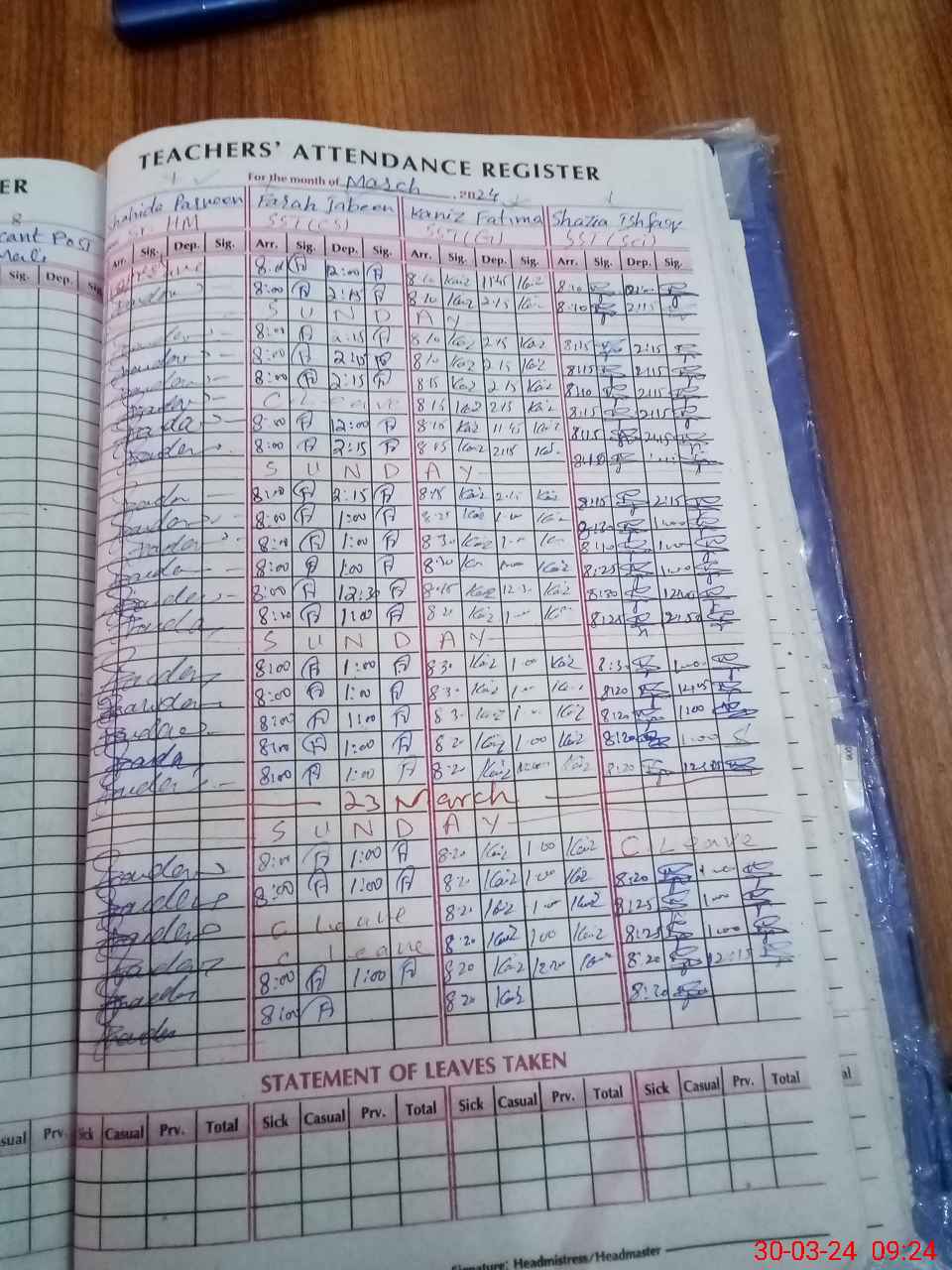 | Presence Of Teaching Staff | 26 | 26 | 0 |