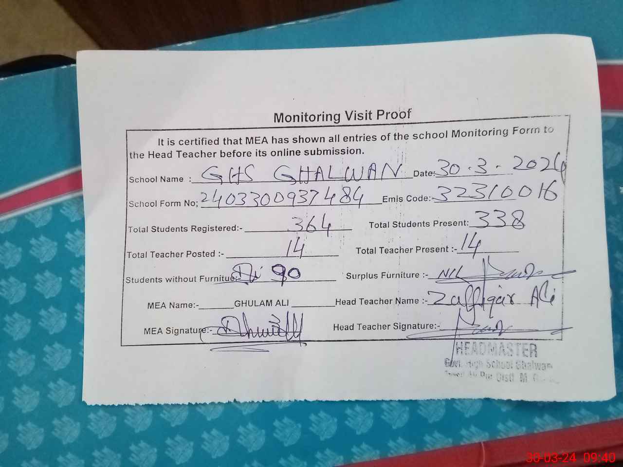 | EMIS Code: 32310016 | Name of School: GHS GHALWAN | |||