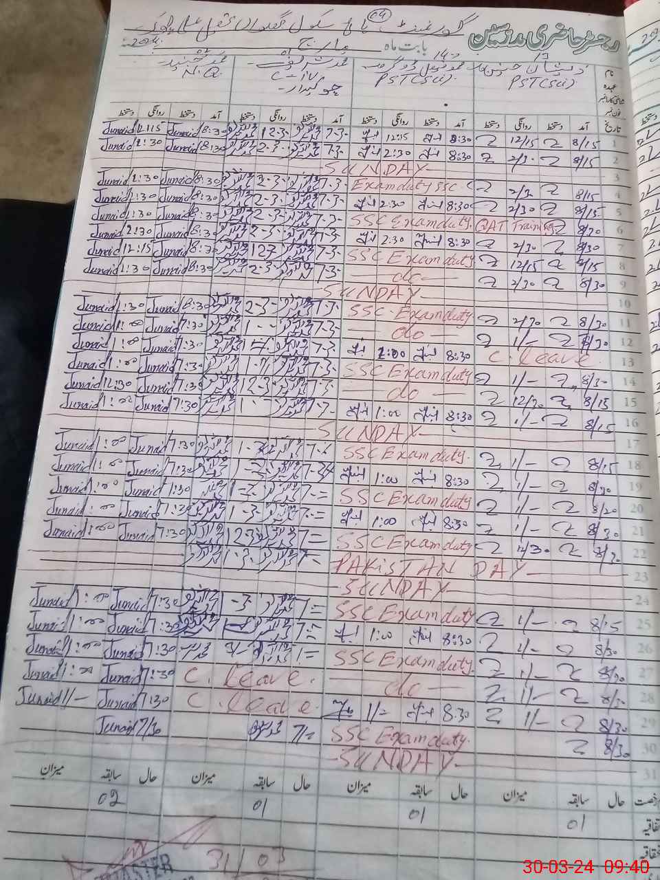 | 32**** | Mu**** Fa**** | 2 | 1 | 0 | 0 | 0 | 0 | 0 | 0 | 0 | 1 | Exam Duty | |